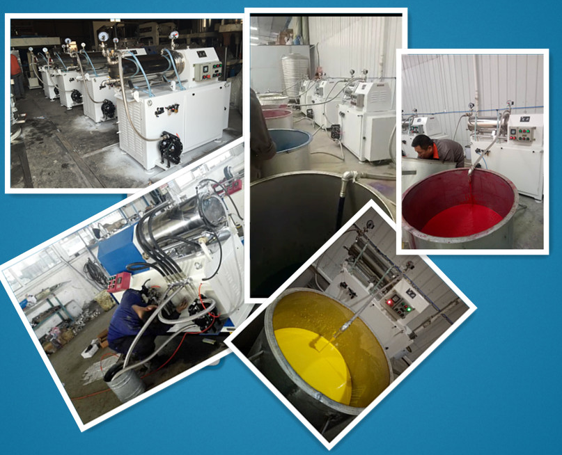 臥式密閉砂磨機(jī)是一種采用濕法研磨分散、筒體水平安裝、連續(xù)密閉生產(chǎn)的化工設(shè)備;型氣動(dòng)雙隔膜泵(或齒輪泵)將經(jīng)過預(yù)分散、潤(rùn)濕處理的固液相混合物料輸入筒體內(nèi),物料和筒體內(nèi)的研磨介質(zhì)一起被高速旋轉(zhuǎn)的分散器組所攪動(dòng),使物料中的固體顆粒和研磨介質(zhì)間產(chǎn)生強(qiáng)烈的碰撞、剪切,在短時(shí)間內(nèi)達(dá)到物料顆粒的磨細(xì)和分散聚集體的目的。是生產(chǎn)油漆、油墨、染料等產(chǎn)品的常用設(shè)備